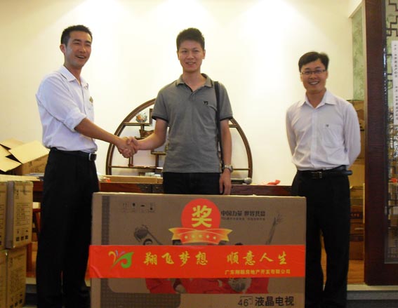 其中最令人矚目的莫過于在筠州花園售樓中心舉辦的抽獎(jiǎng)活動。10月1日至5日,每天均抽出大獎(jiǎng),獎(jiǎng)品包含有46寸大彩電、消費(fèi)券和高檔餐廚具,非常豐厚。累計(jì)共有100名幸運(yùn)客戶抽到大獎(jiǎng)。