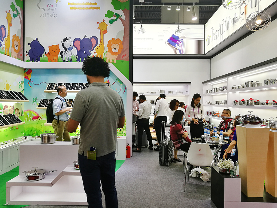 作為一家做五層鋼的專業餐廚具生產廠家,翔順餐廚具有限公司十分重視廣交會這個機會,為了突出本屆廣交會,公司各部門提前做足準備,從產品定位、設計、技術創新,展會的特裝設計等都花了很大的心思,共推出了十多個系列的餐廚具新產品,吸引了較多實力的采購商進行深入洽談合作。今年公司以優質的復合料鍋具及高端的兒童餐具作為主打產品;同時新增加了數款復合底打底鍋具投放市場。