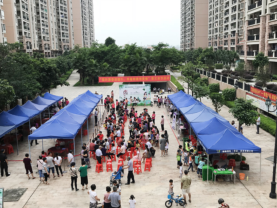 各小區現場均邀請業委和文化界的業主擔任評委,現場查看粽子質量并評分,經過緊張的角逐,各小區評選出了一、二、三等獎,大伙一起舉粽歡呼,熱鬧的場景,濃濃的粽香,溫馨而有愛。