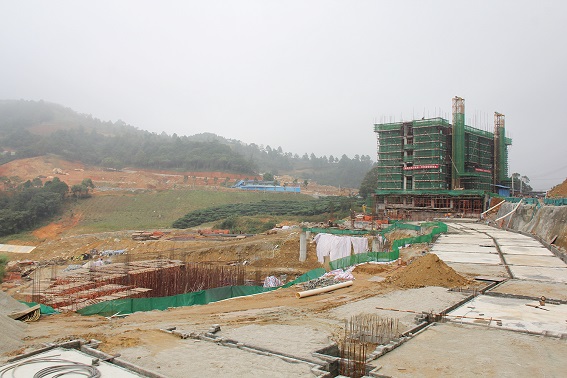記者走訪象窩項(xiàng)目工地,遠(yuǎn)遠(yuǎn)便能看到一幢樓宇屹立于工地之上,格外顯眼。象窩旅游度假綜合項(xiàng)目經(jīng)理羅嘉鵬告訴記者,目前該項(xiàng)目建設(shè)較為順利,1號(hào)公寓已經(jīng)封頂,酒店負(fù)二層底板建設(shè)已完成近70%,室外泳池基建已經(jīng)完成,別墅區(qū)三通一平工作已接近尾聲。此外,南北湖基建已完工,并計(jì)劃本月30日全面蓄水。