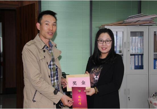 12月6日上午,集團人力資源中心副總經理陳濤為第一位“金點子”提議者——建筑公司執法部標準員高宇航頒發獎金和感謝信,表達了對其合理化建議的褒獎和肯定。