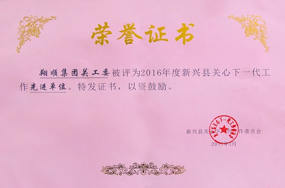 近日,集團(tuán)榮獲“2016年度新興縣關(guān)心下一代工作先進(jìn)單位”榮譽(yù)稱號。