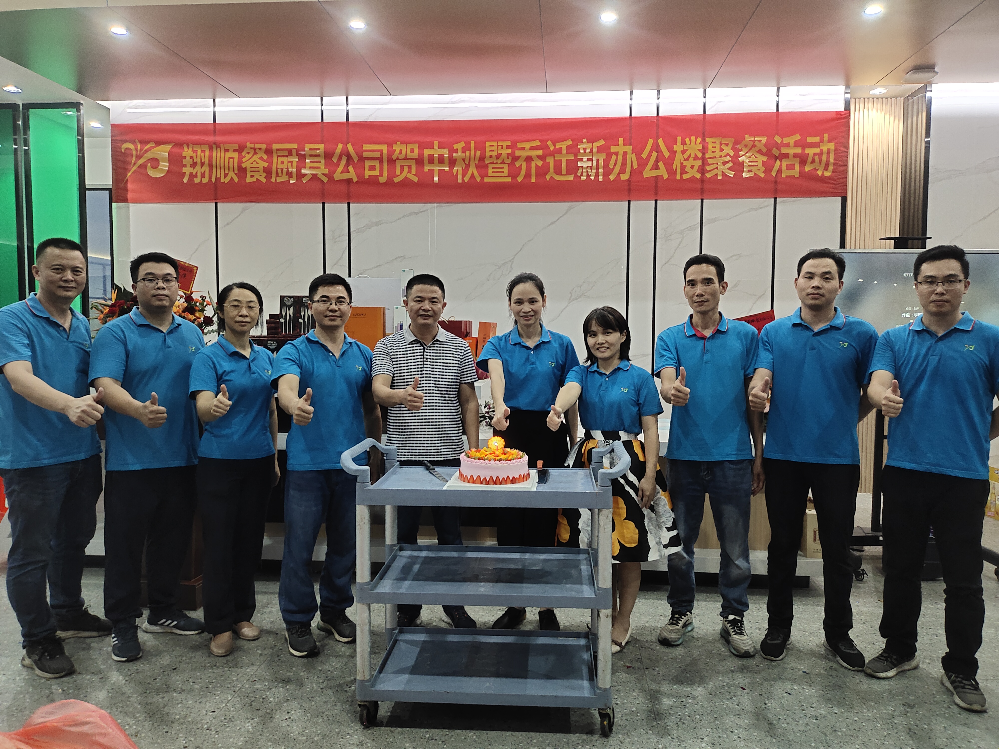 金風(fēng)送爽,共賀中秋。9月9日,為了喜迎傳統(tǒng)節(jié)日——中秋佳節(jié)的到來,豐富員工的精神文化生活,增進(jìn)員工凝聚力和向心力,結(jié)合新辦公樓裝修完成之契機(jī),翔順餐廚具公司隆重舉行賀中秋暨喬遷新辦樓聚餐活動(dòng)。