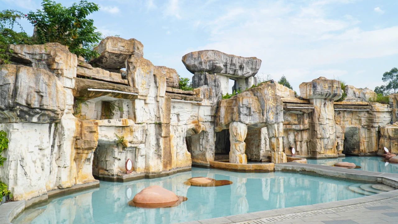 溫泉區(qū)總面積約2.3萬(wàn)平方米,分為兒童歡樂(lè)區(qū)、動(dòng)感游樂(lè)區(qū)、特色養(yǎng)生區(qū)、網(wǎng)紅泳池區(qū)等,溫泉泡池共50多個(gè),融合了南藥溫泉、三料溫泉、禪意溫泉等養(yǎng)生特色池。其中沖浪池配備表演舞臺(tái),周末的夜晚,犒賞肌膚,喚醒疲憊身心,在溫泉水的浸潤(rùn)下煥發(fā)新生。