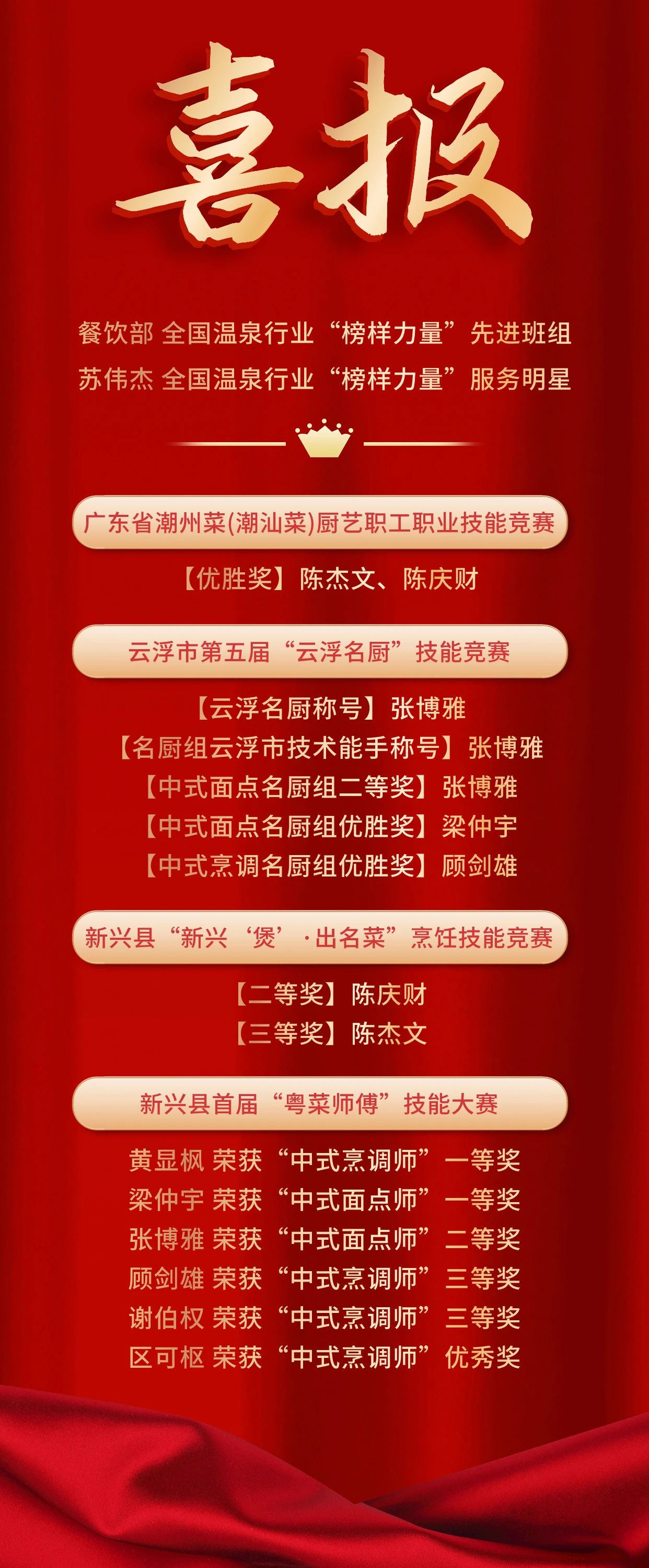 同時(shí),翔順金水臺(tái)員工積極參加廣東省、市、縣比賽,勇于突破自身,屢摘碩果,其中: