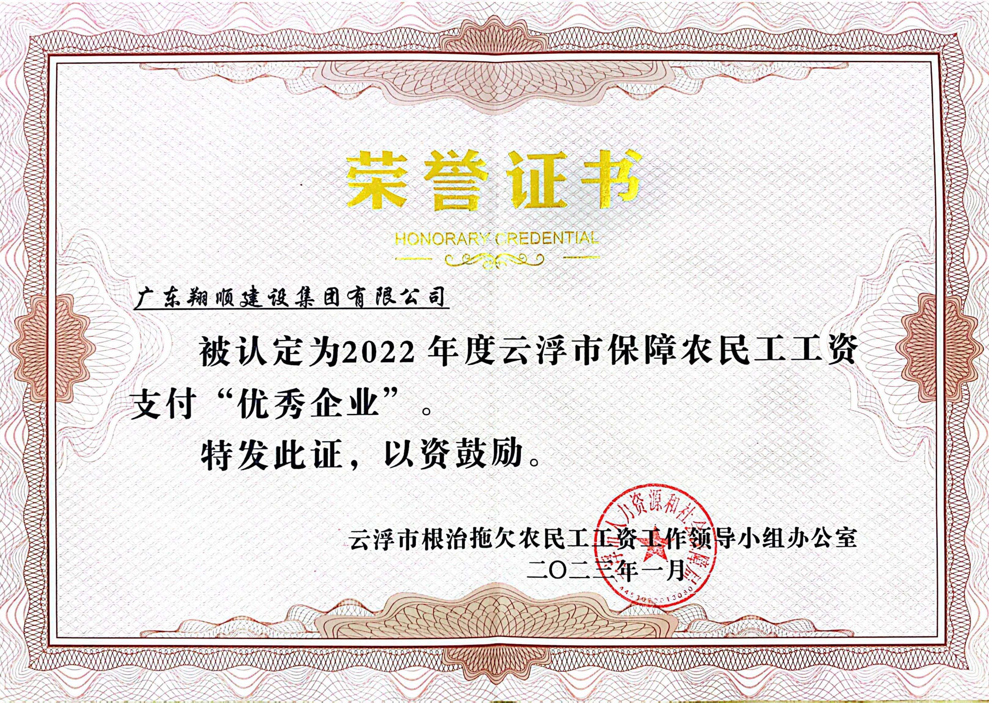 2023.7翔順建設集團被評定為2022...