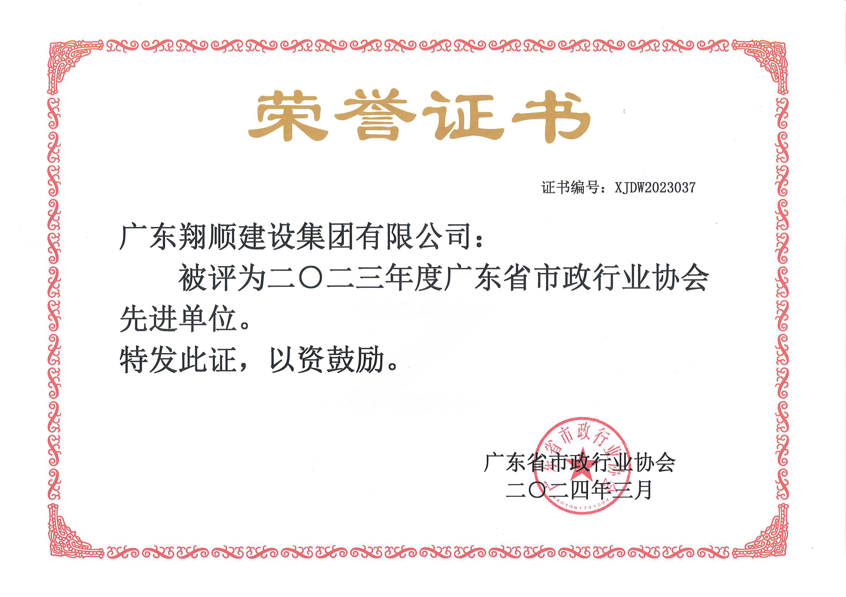 2023.7廣東翔順建設集團獲得省級...