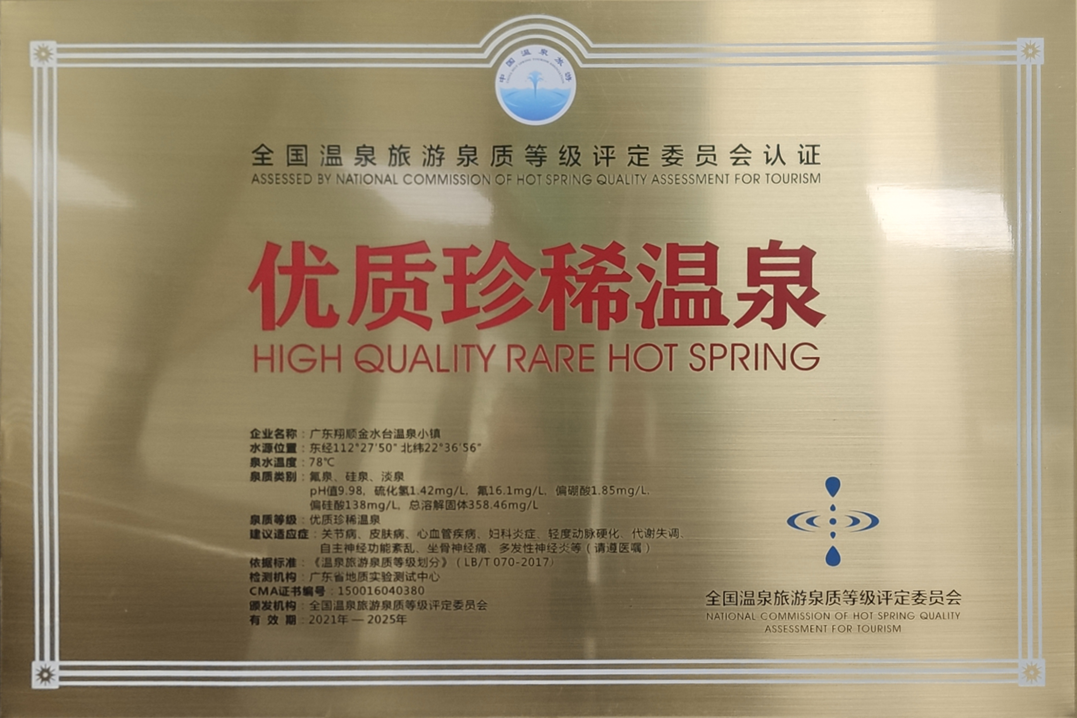 翔順金水臺溫泉特色小鎮,規劃占地面積約4500畝,位于六祖慧能的故鄉——廣東新興縣,是國家AAAA級旅游景區。地理位置優越,交通便利,處于珠三角1.5小時生活圈內,先后榮獲全國“優質珍稀溫泉”、“廣東省職工技術療休養基地”、“廣東省溫泉康養創新企業”、“廣東溫泉企業三十強”、“全國五星溫泉旅游企業”等榮譽。 小鎮以氟泉、硅泉、淡泉為主的溫泉資源為核心,打造集休閑度假、親子旅游、商務會議、團隊拓展、溫泉康養等多模式于一體的康養度假勝地,致力成為廣東的特色文旅新名片。