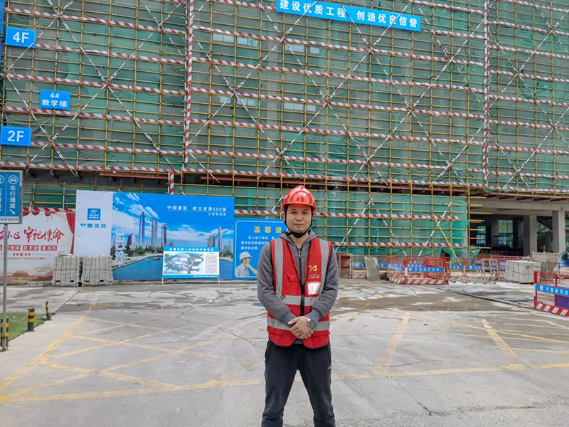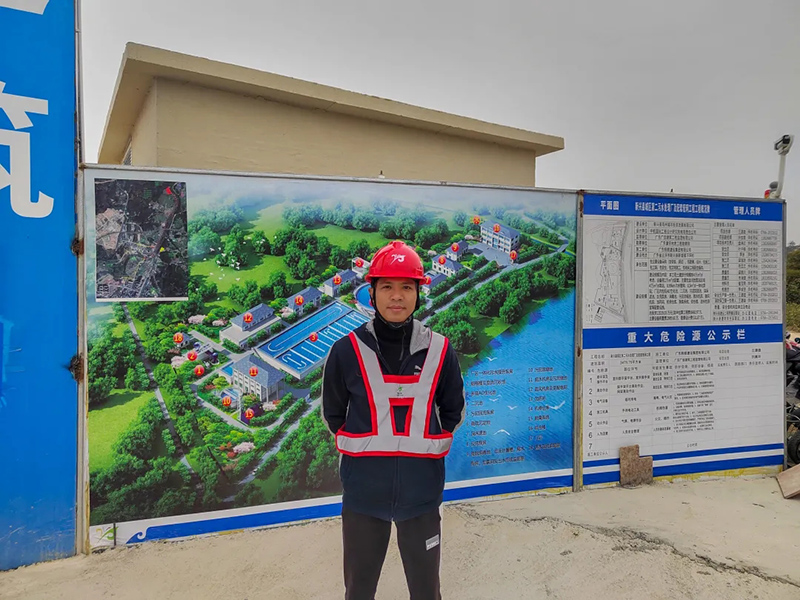 “今日事,今日畢”,是梁紹金的做事原則,他在2021年度擔任新興縣體育館改造項目和第二污水處理廠項目的技術生產主管,將工地當成家成為了他的生活日常。