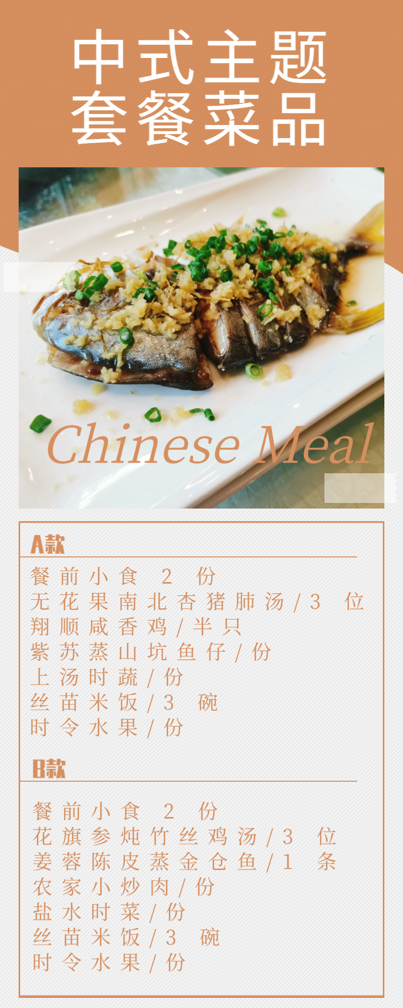 2、套票所含的中餐套餐為正餐(時間18:00-20:30),由餐廳提供兩款菜單給客人選擇。