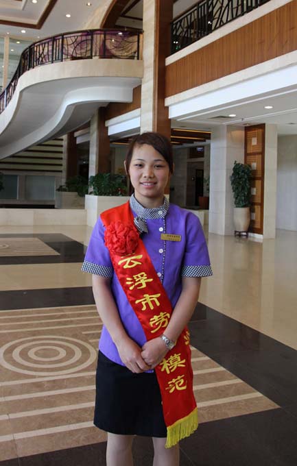 經(jīng)過幾年的歷練,身為90后的黃彥表現(xiàn)十分出色,成為酒店服務(wù)員的優(yōu)秀代表,并晉升為領(lǐng)班。她積極進(jìn)取,認(rèn)真負(fù)責(zé),腳踏實(shí)地的精神影響著和她共事的每一個翔順人,她活潑開朗的性格讓她的團(tuán)隊更加團(tuán)結(jié)、充滿活力。她的突出表現(xiàn)為眾多的90后樹立了榜樣,無愧為“云浮市勞動模范”。