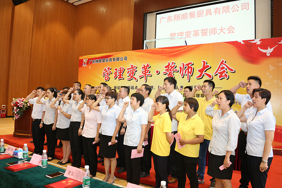 本誓師大會旨在傳達管理變革精神,宣導管理變革意義,統一全員管理變革思想,提升管理變革士氣,對推動餐廚具公司管理變革全面提升起著重要作用,我們期待著翔順餐廚具的變革創新,崛起發展,做大做強。