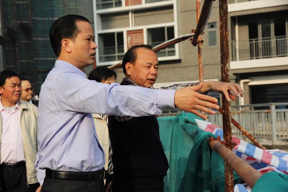 在考察筠州花園時,看見小區南大門正在加緊施工,出入口的門廊外貌已見雛形,江壯宏駐足傾聽崔總介紹施工情況。他鼓勵翔順切切實實做好筠州花園的建設工作,為新興縣人民安居樂業造福。