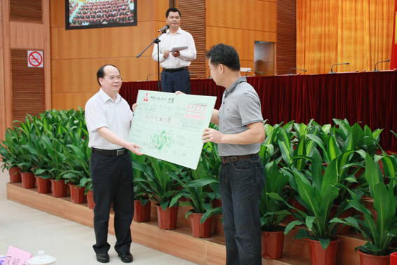 2011年6月29日,在我縣第二個“廣東扶貧濟困日”活動啟動儀式上我公司捐贈120萬元,表達企業對社會公益事業的關心和支持。上圖為集團副總裁崔健全(右)代表公司捐款。