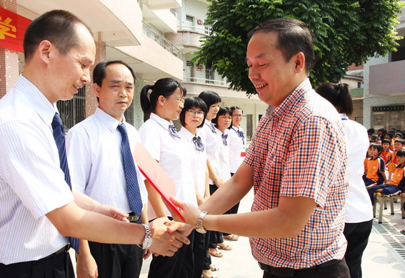 9月25日,學(xué)校的獎教獎學(xué)活動隆重舉行。縣教育局副局長黎開云,翔順集團副總裁鐘世雄、總裁夫人蘇洪有、行政副總經(jīng)理陳錦嫦等領(lǐng)導(dǎo)及學(xué)校426名師生參加儀式。