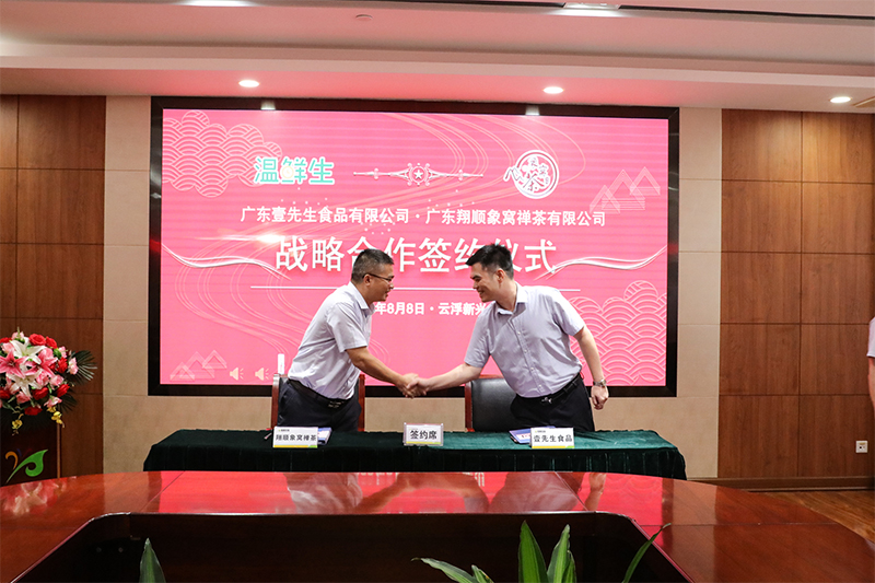 8月8日下午,廣東翔順象窩禪茶有限公司與廣東壹先生食品有限公司(簡(jiǎn)稱“壹先生食品”)在翔順控股集團(tuán)總部正式簽訂戰(zhàn)略合作協(xié)議,開啟了禪茶公司業(yè)務(wù)拓展的新模式。象窩禪茶公司總經(jīng)理崔少強(qiáng)與壹先生食品總經(jīng)理李鏡聰分別代表雙方簽約。