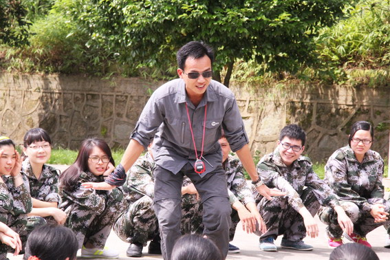 40分鐘后,我們來到了飛天蠶酒店。一下車,滿山的翠綠映入眼簾、清新的空氣撲面而來。正當我們陶醉在大自然美景里時,一聲清脆的哨聲劃破了早晨的寧靜,教官早已在操場上等候我們。原來下車的第一件事不是直奔餐廳吃早餐,而是帶上行李集合,大家不得不連走帶跑唯恐落后于人。集合完畢后就是清點人數及宣布培訓紀律。今年的紀律很嚴,其中最嚴的包括每次集合必須在十秒鐘內完成、上課時坐椅不能靠背、不能帶手機進入課室、就餐時不能講話、遲到一次做十個俯臥撐等,很多同事都被嚇得直吐舌頭。