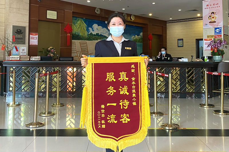 二月初,客人梅女士與其先生入住翔順金水臺(tái)兩晚,在旅途開(kāi)始的第一天,梅女士的先生不小心碰傷了額頭,公司工作人員在接到求助后,第一時(shí)間由副總經(jīng)理親自駕車(chē)帶客人到最近的醫(yī)院對(duì)傷口進(jìn)行處理,所幸無(wú)大礙。第二天晚上,梅女士突發(fā)胃痛,值班經(jīng)理立即派司機(jī)并陪同送其至醫(yī)院治療。客人回到景區(qū)后,工作人員對(duì)其進(jìn)行了悉心的照料,同時(shí)安排管家跟進(jìn)其身體情況,直至其無(wú)恙離店。客人返家后在春節(jié)期間寄來(lái)了錦旗,對(duì)金水臺(tái)公司的服務(wù)周到、處理及時(shí)給予了肯定,并表示了感謝。