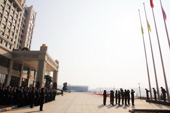 伴隨著激昂的進(jìn)行曲,由翔順物業(yè)公司15名員工組成的護(hù)旗方陣昂首挺胸,護(hù)衛(wèi)著國(guó)旗和翔順公司旗齊步走到升旗臺(tái)。隨著主持人的指示,國(guó)旗和公司旗在國(guó)歌聲中迎著太陽(yáng)冉冉升起,成為集團(tuán)喬遷大喜里一道靚麗的風(fēng)景。參加儀式的員工在旗幟下,紛紛許下了對(duì)祖國(guó)和集團(tuán)的美好祝福。