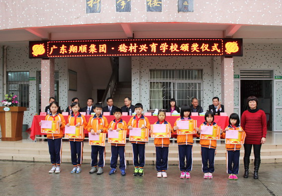 3月16日,稔村鎮興育學校舉行每學期一次的“翔順集團獎教獎學頒獎儀式”。縣教育局長崔有輝、集團副總裁鐘世雄、總裁夫人蘇洪有、總裁助理鄺紹榮、行政總經理陳錦嫦、稔村鎮中心校校長伍啟光以及壩塘村委的相關領導出席儀式。