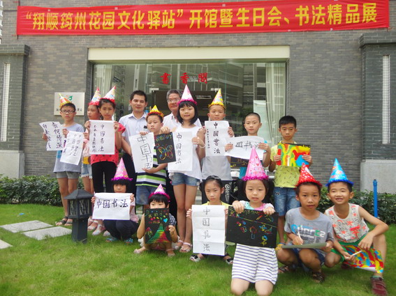 縣圖書館館長楊琪先親臨現場指導傳授閱讀方法并精心為小區里六月份生日的小壽星以及其他小朋友帶來了50張縣內通用的免費借書證以及筆記本。楊館長向家長們提議“閱讀讓人充滿力量和智慧,家長應適當引導孩子如何正確閱讀,讓孩子每天半個小時讀書時間,積累精神財富”。同時,縣書法家協會主席麥友安現場書法臨摹,指導小朋友們寫“中國書法”。翔順物業公司相關工作人員為小區內六月的小壽星準備了蛋糕,讓壽星們與文化驛站一同慶生,勇敢的小朋友還上臺為大家表演朗誦。