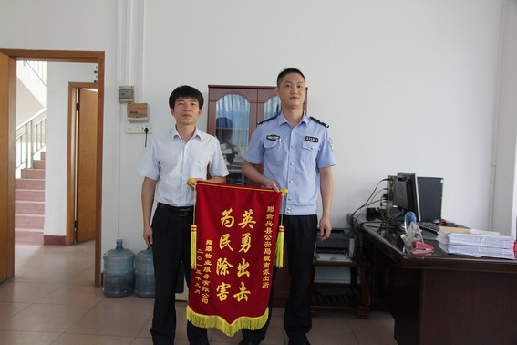 9月9日上午,為感謝城南派出所近段時間以來在打擊盜竊行為中給予的大力支持,翔順物業公司總經辦成員黃立志、黎耀基、蘇國英一行帶著慰問品和錦旗專門到城南派出所表示感謝。