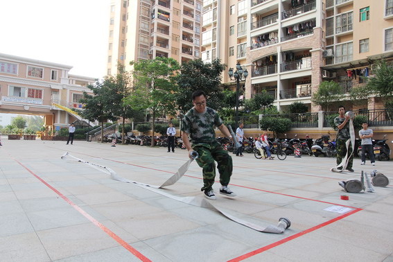 下午2時(shí)30分,比賽正式拉開序幕,演練人員迅速到位并展開了緊張的技能比拼。此次演練以消防水帶操作為比賽內(nèi)容,每輪同時(shí)2人進(jìn)行比賽,按動(dòng)作的標(biāo)準(zhǔn)、成功拋接的速度來評(píng)分。隊(duì)員們拋水帶、接槍頭、卷水帶,動(dòng)作嫻熟、充滿激情,他們用盡全力去完成比賽的每個(gè)動(dòng)作要求,場(chǎng)面異常激烈。經(jīng)過兩個(gè)多小時(shí)比拼,筠州花園一區(qū)黃世志以46秒的優(yōu)異成績(jī)榮獲第一名。