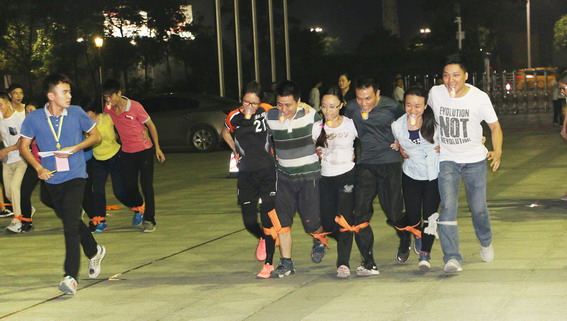 點評:除了球類運動項目外,運動會還增加了兩個游戲比賽項目,分別是六人七足和跳繩接力。兩項游戲比賽都十分考驗隊員的個人發揮及團隊協作。這兩項游戲比賽讓員工們真正意識到了團隊合作的重要性。