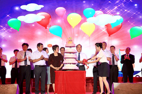 集團二十周年晚會真正詮釋了“有大家才有小家”、“翔順人一家親”的和諧含義。當晚8時許,一千余名翔順員工齊唱《翔順之歌》,鏗鏘有力的歌聲在宴會廳里回蕩。當工作人員緩緩地把五層高的生日蛋糕推至舞臺中央時,當總裁及夫人齊切蛋糕時,當集團高層領導們圍繞在蛋糕周圍一齊許愿時,宴會廳里沸騰了,大家共同唱響《生日歌》,現場充滿溫情,猶如大家庭般和諧。