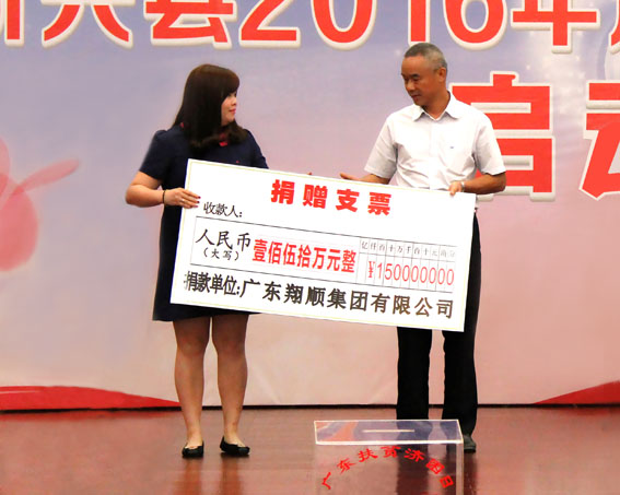 本報(bào)訊    6月29日下午,在2016年“廣東扶貧濟(jì)困日”活動(dòng)啟動(dòng)儀式上,集團(tuán)總裁助理崔健鋒代表翔順向新興縣政府遞交150萬元捐贈(zèng)支票,繼續(xù)助力新興扶貧事業(yè)。翔順也因此成為本屆“廣東扶貧濟(jì)困日”活動(dòng)重點(diǎn)捐贈(zèng)企業(yè)之一。