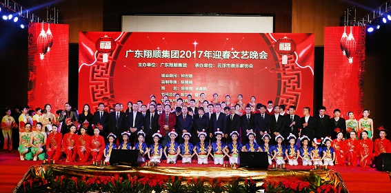 猴去雞來豐收年,鶯歌燕舞騰飛歲,又是一年新春佳節。1月24日晚,集團綜合園區多功能廳燈火輝煌、熱鬧非凡,2017翔順集團迎春文藝晚會隆重舉行,集團全體員工、總經理以上領導家屬、退休老員工以及支持翔順集團發展的嘉賓好友、媒體記者1600余人歡聚一堂,共賀新春。