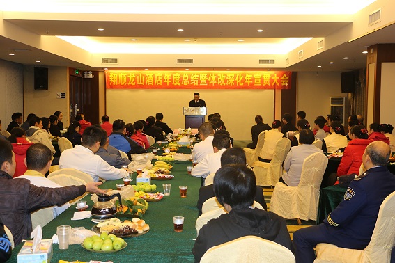1月15日下午,翔順龍山酒店“2016年度總結暨體制改革深化年宣貫大會”在酒店大會議室召開。酒店除值班人員外,共110余名員工參加會議。