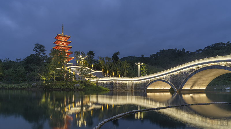 金臺山公園是新興縣重要的生態保護園區,定位為新唐式風格,運用唐式建筑莊重大方、舒展而不張揚、古樸而富有活力的氣質融合新興經典禪文化的氛圍,以“一軸兩湖兩溪五大區”作為園區的核心布局,打造以“禪”為文化依托的粵西地區公園新標桿。