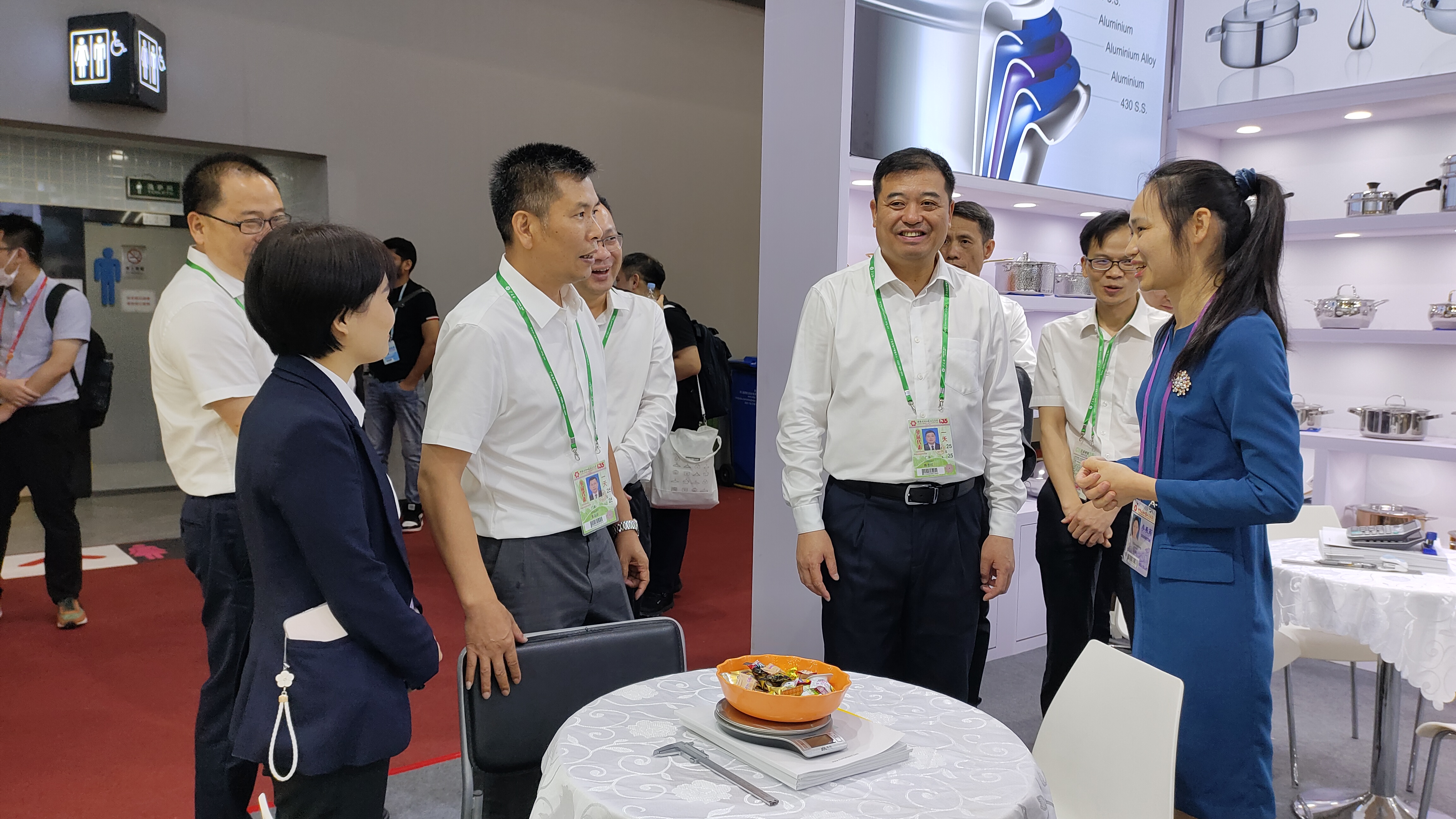 廣交會受縣領導重視,新興縣委書記陳哲江一行蒞臨展位參觀指導,指出企業發展對地方的經濟建設起重要作用,鼓勵翔順餐廚具繼續發揮優勢。在此次廣交會,翔順控股集團總裁陳彬亦到場給予支持和指導,要求翔順餐廚具以“拓市場、穩質量”為主線,實現企業穩步發展。