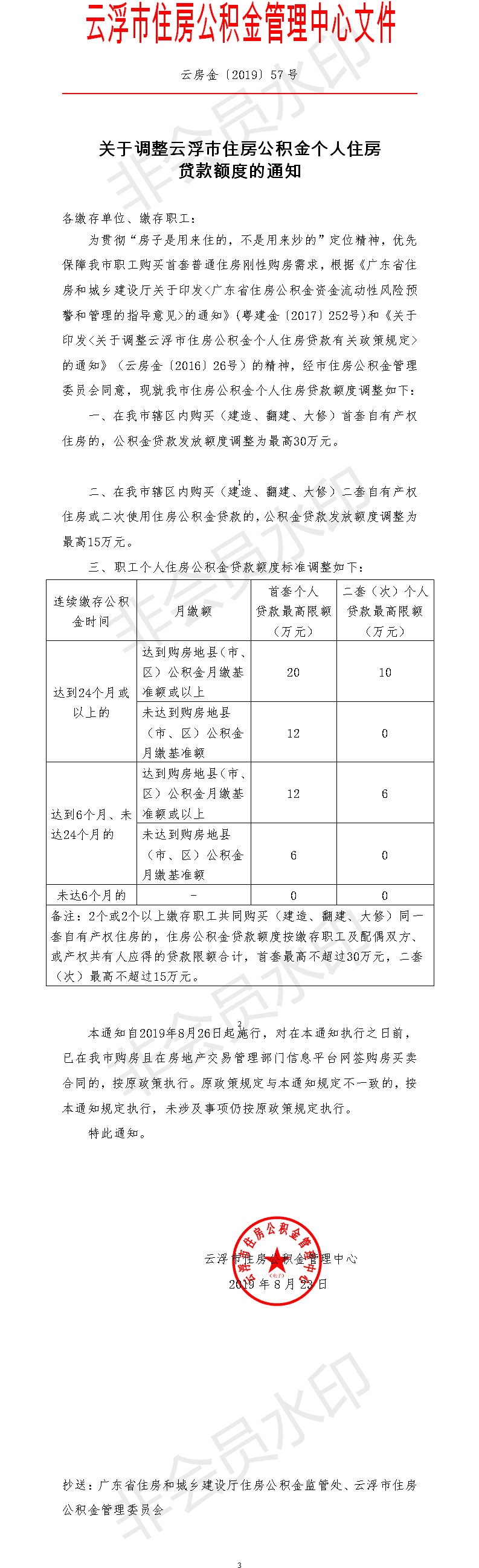 關(guān)于調(diào)整云浮市住房公積金個(gè)人住房 貸款額度的通知 各繳存單位、繳存職工: 為貫徹“房子是用來(lái)住的,不是用來(lái)炒的”定位精神,優(yōu)先保障我市職工購(gòu)買首套普通住房剛性購(gòu)房需求,根...