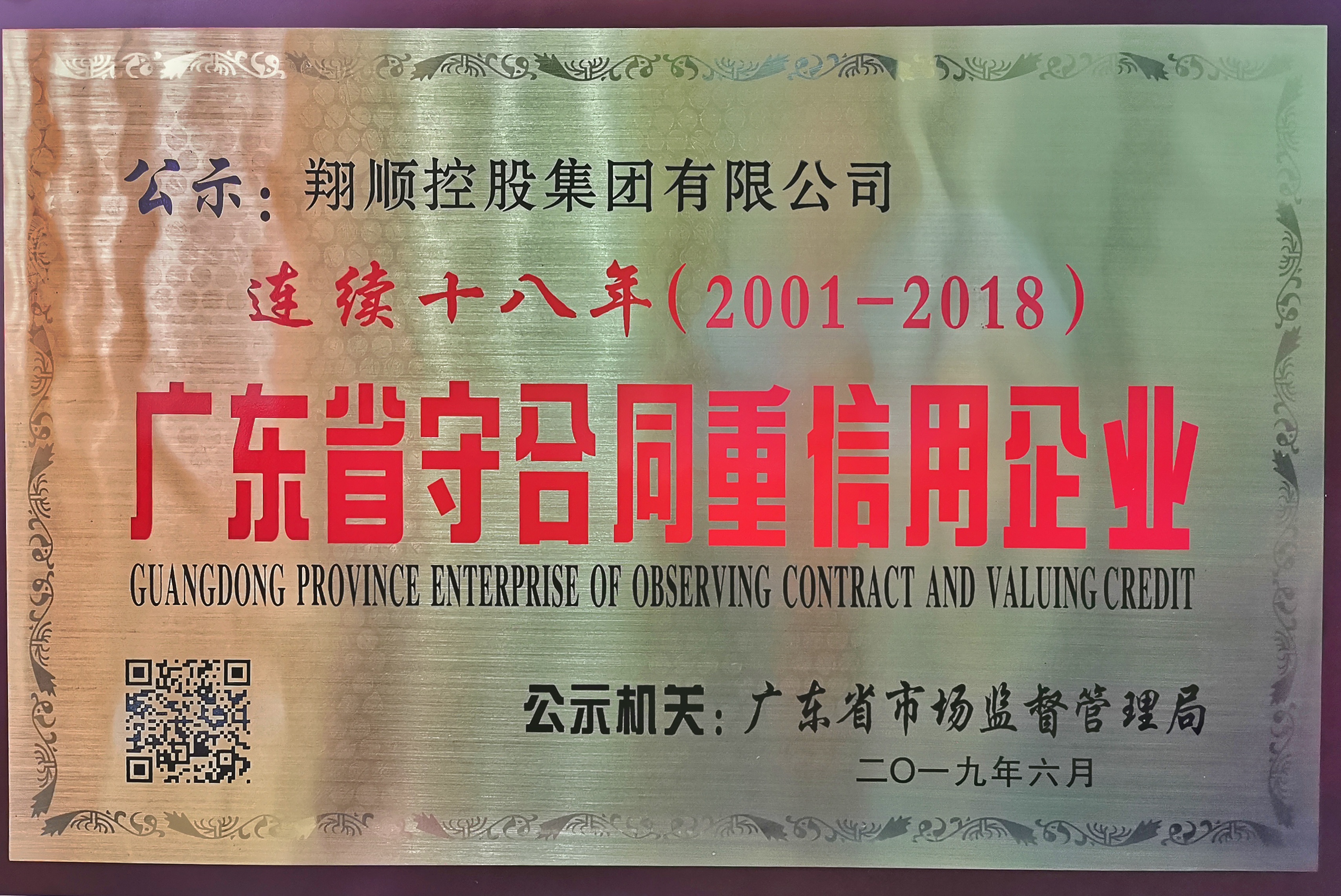 連續(xù)十八年獲廣東省守合同重信用...